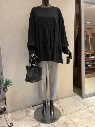 長め丈になり、パンツの上にさらっと着て頂けるブラウスです。