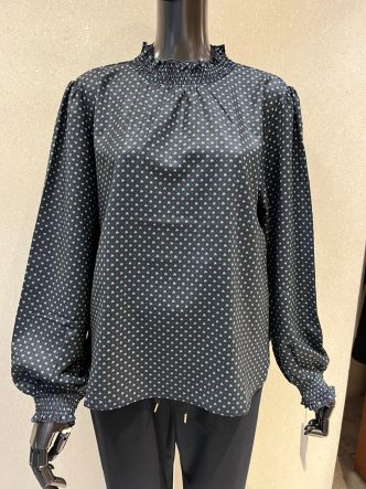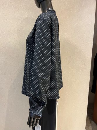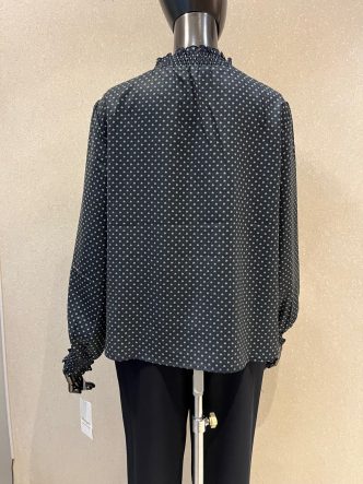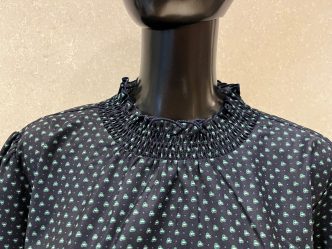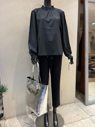 ネックにはギャザーが寄せられ(ゆとりがあります)ややハイネック。