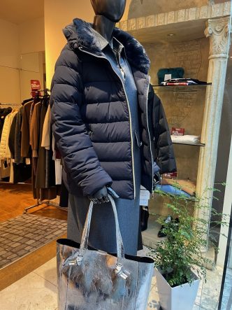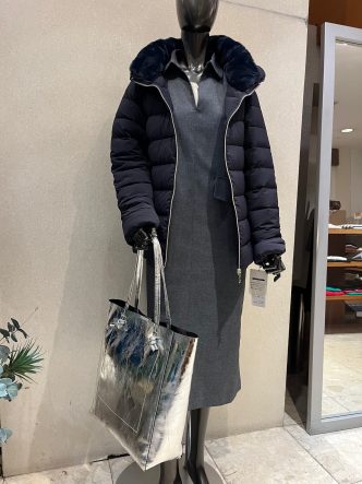 ネイビーのストレッチダウンに入荷したばかりのシャツワンピースを合わせてみました😉