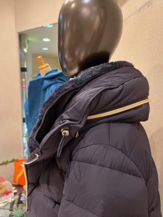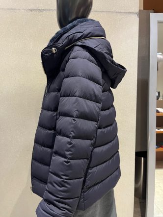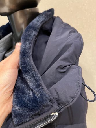 襟の内側がネイビーのエコファーになっています♡