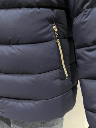 表面はマットなタフタ素材、伸縮性があり、とても着心地のいいダウンです。