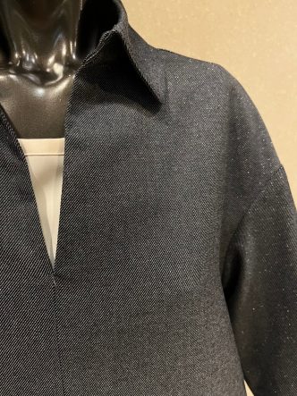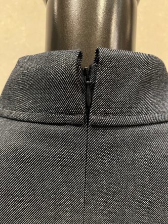 ファスナーは襟の上の部分まで。