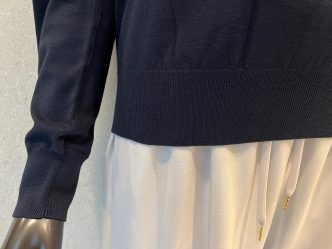 ネイビーにイエローが効いて、上品なスポーティ。DUAL VIEWならではのニットです。