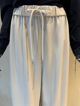 両面起毛のものよりさらっとして、ジョーゼットのような表面感になり、秋の今、履いて頂けるパンツです。