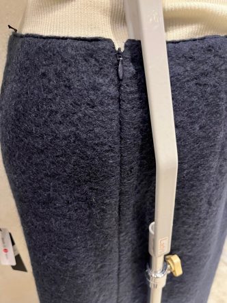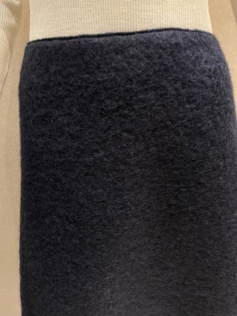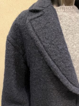 形が立体感のあるような形で、裾に向かって少しコクーンになるようなシルエットです。