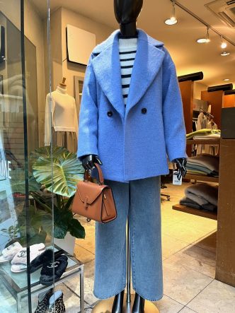 肩が少し落ちたデザインになり、中に厚手のニットも着こめます👌