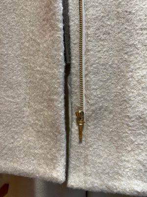 お袖は肩線が無いタイプ。前はファスナーになり、裾より少し上の位置まで。