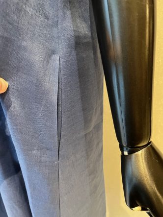 リネンの生地はこのくらいの生地感、麻ならではの、シャリ感と張りがあり、透けないようにペチコートも別で付いています。