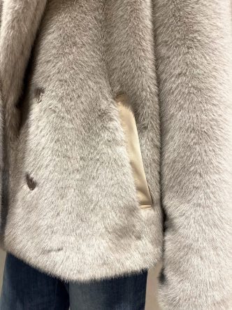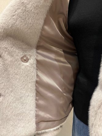 前はダブルになり、裏地もグレージュ。
