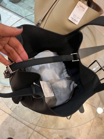 中にポケットなどはありませんが内袋が付いて、こちらで収納して頂けます。