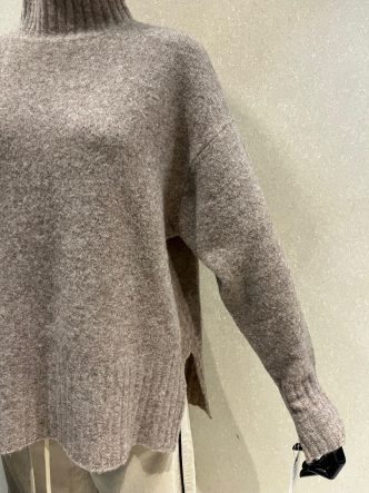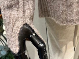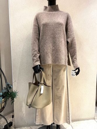 ふんわりとしたラクーンウールを使用したハイネックニットです。