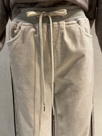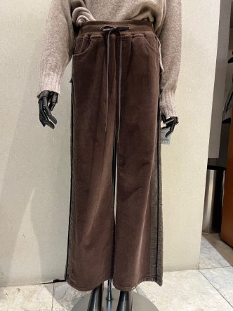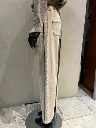 人気のワイドデニムのコーデュロイバージョンですが、こちらの方が全体的に細身になります。