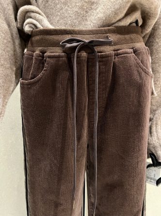 ブラウンはサイドにカーキの別珍素材、ブラックのラインが入っています😉
