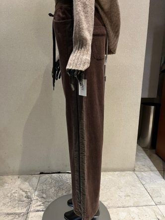 サイドは別珍の異素材がライン上に入り、さらに真ん中にブラウンのラインも入っています😉