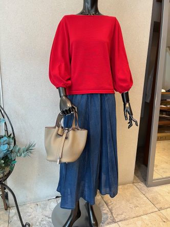 とにかく赤の発色がとてもきれいなパッと目を引くニットです♥