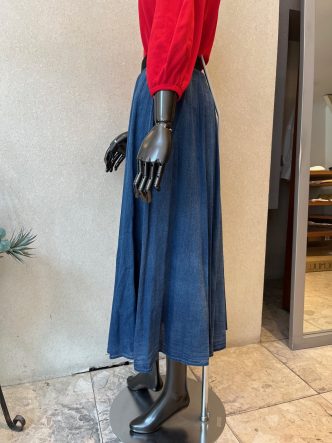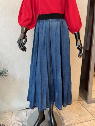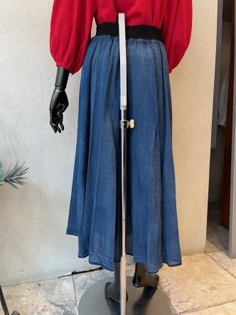 デニムスカートはちょっと暑いイメージがありますが、こちらはデニムの雰囲気はありつつ、薄手で涼しく履いて頂けるスカートです♡