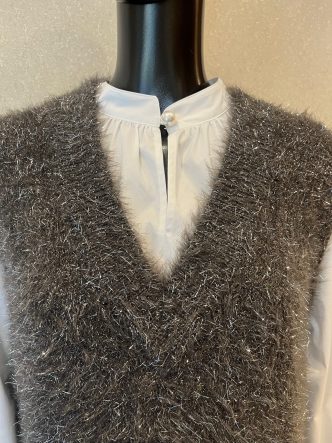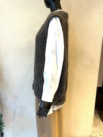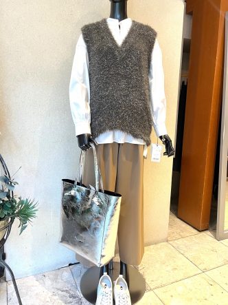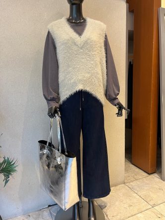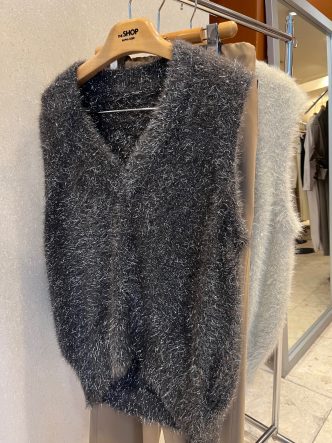 そんなレイヤードにもピッタリなキラキラのニットベストです♪