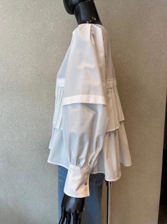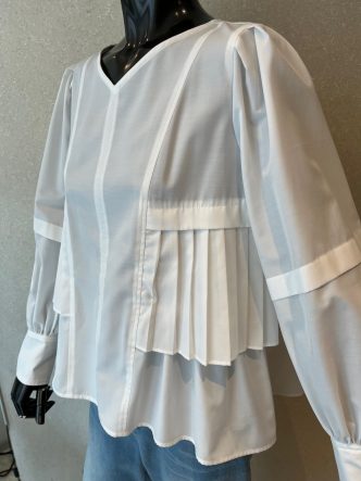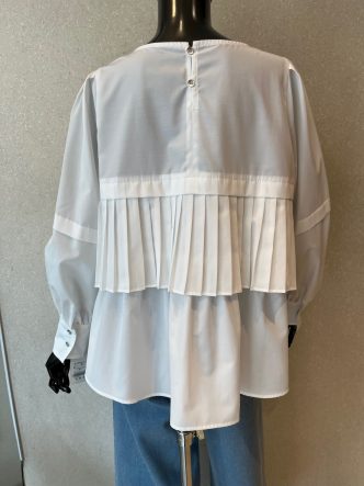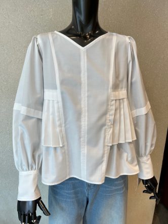 身頃にプリーツがあしらわれた、デザイン性のある白ブラウスです♡