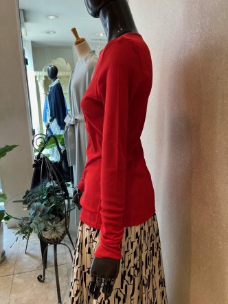 コンパクトなサイジングですが、柔らかい伸びがあり、インナーとしてとても使いやすいシンプルなカットソーです。