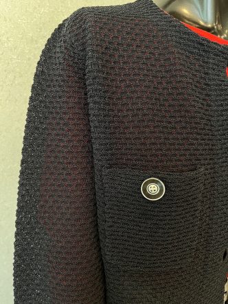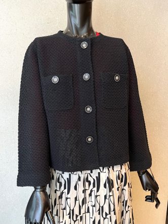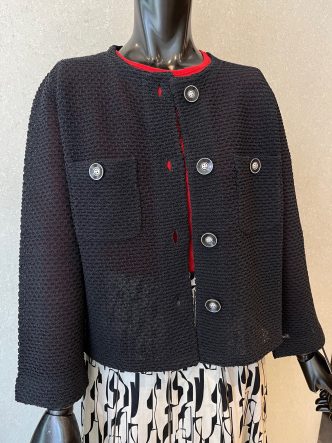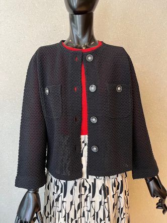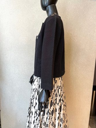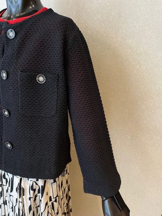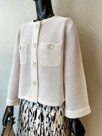 胸元のポケット、ボタンがアクセントになったジャケット風のカーディガンです。