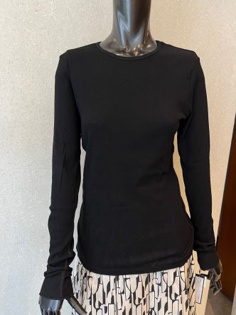 シンプルでインナー使いがしやすい、少しお袖が長めの丸首カットソーです。