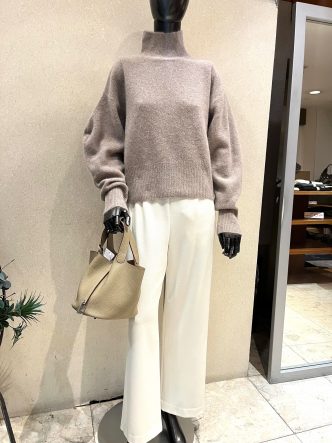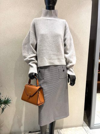 色違いのグレージュ、スカートに合わせてみました♪