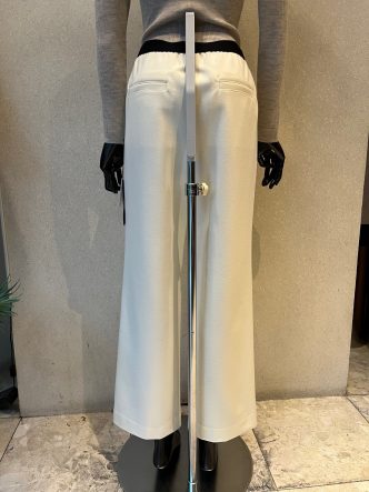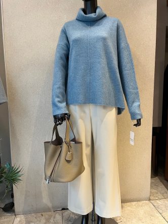 白のワイドパンツに、ブルーのニットを合わせてみました♪