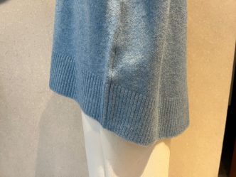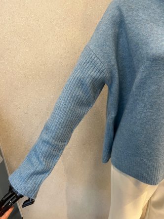 パンツの上にさらっと着れて、一枚で暖かくきれいなブルーが映えるニットです♪