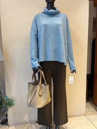 スカイブルーが美しい、ゆったりとして暖かいタートルニットです♡