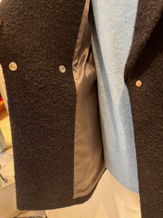 肩が落ちたドロップショルダーになり、中にゆったりしたニットを着こんでも余裕です😉