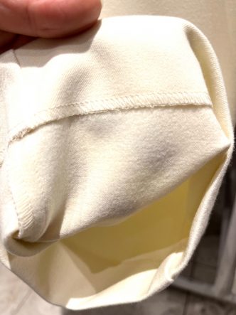 ネックは緩めのタートルネック。締め付け感のないタートルです。