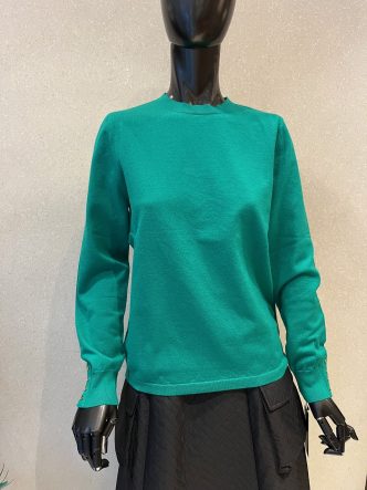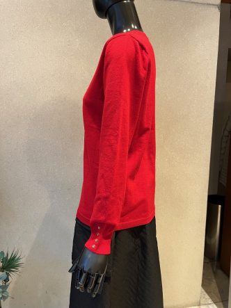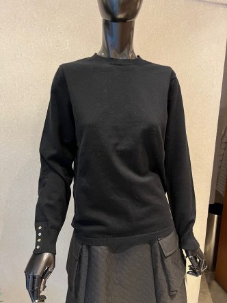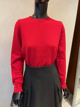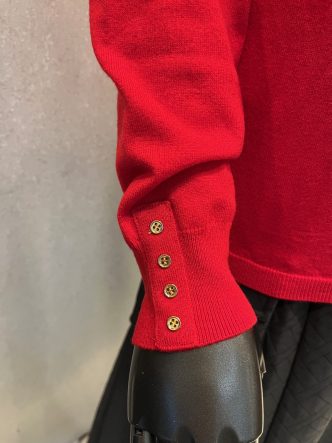 ネックは上品な丸首。袖口のゴールドのボタンがポイントです😉