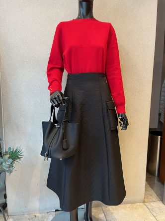 ブラックのフレアースカートに赤のニットを効かせたコーディネートです♡