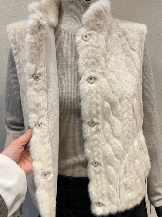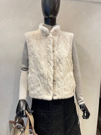ケーブル編みの模様が可愛いエコファーベストです♡