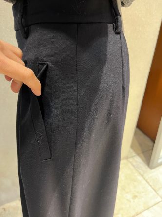センターシームが入り、左右に2つずつのタックが入ったタックフレアー。