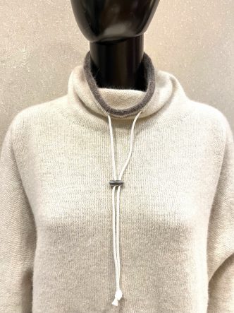 ネックはハイネック。袖口、裾はリブ仕様になります。