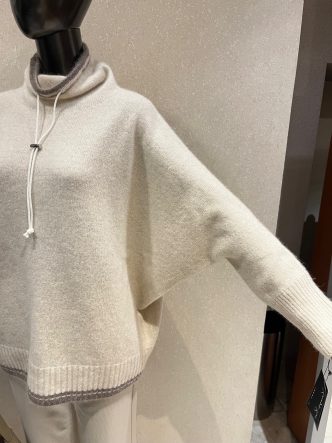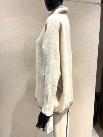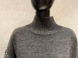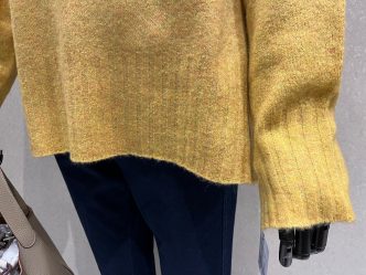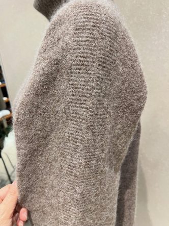 よく見ないと分かりにくいんですが、肩から袖、裾にはリブの編地になっています😉
