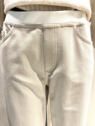 伸びがあって、ファスナーも何もなく、するっと履いて頂けるパンツです。