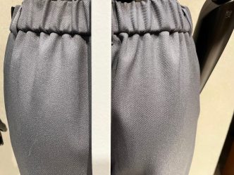 ウエスト後ろはゴムになり、サイドファスナーになります。