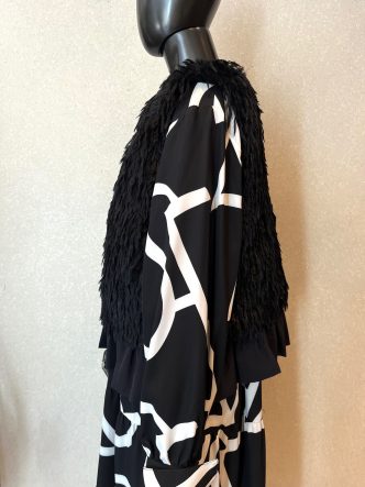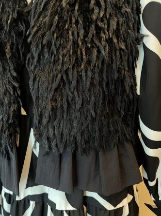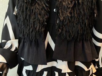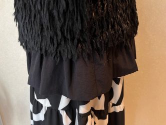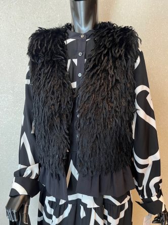 ふわふわとしたブラックのエコファーが華やかなベストです♡