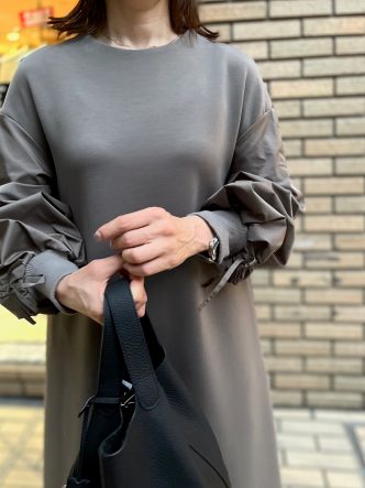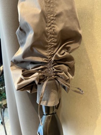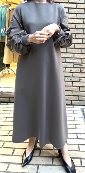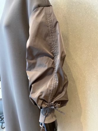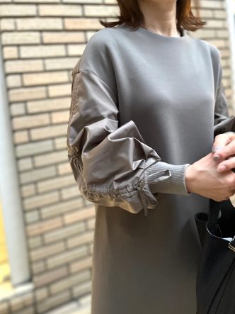 お袖はタフタ素材になり、クシュっとできるシャーリングが通っています♡