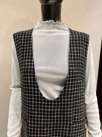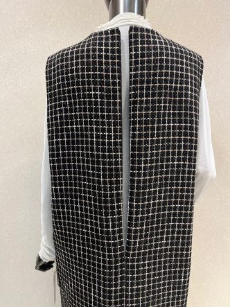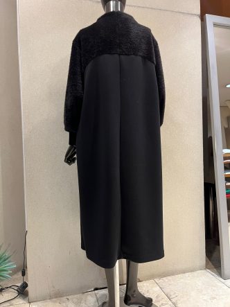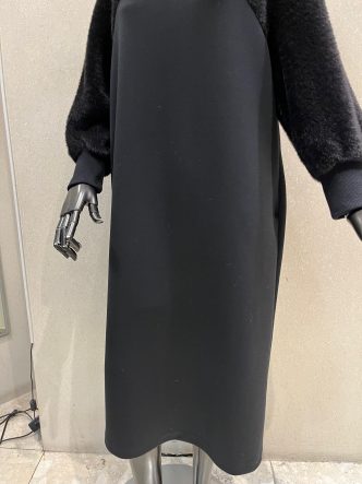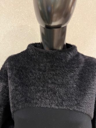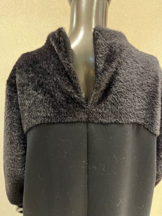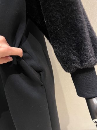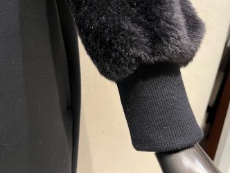 バストから上、お袖がブラックのエコファー、身頃部分はつるんとしたダンボールニット素材です。