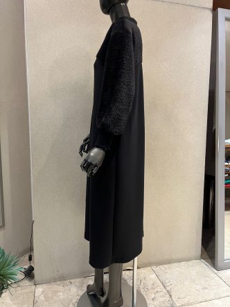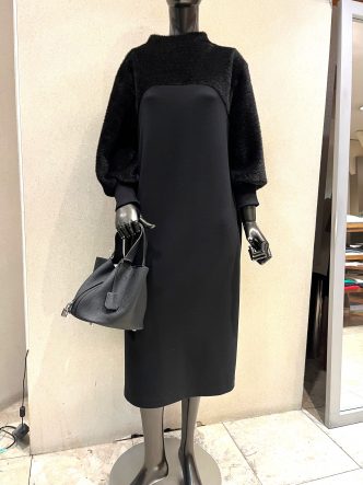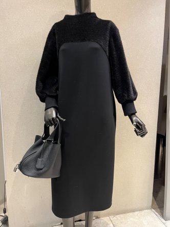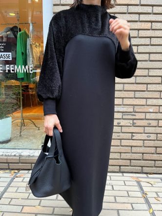 エコファー調の素材とダンボールニット素材がコンビになったワンピースです♪