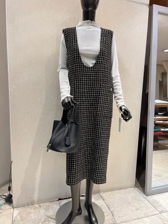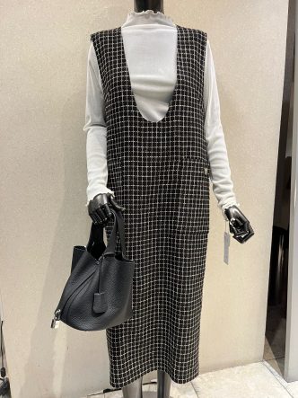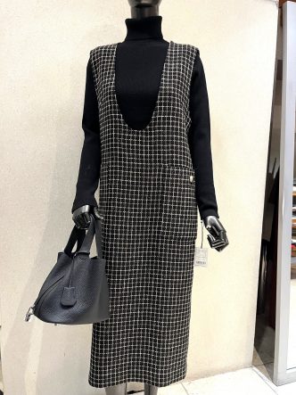 ワンピース色々♪ B7ツイードジャンバースカート&KOKIAブラック異素材使いワンピース&チェック柄ワンピース