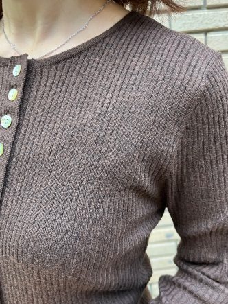 どちらかというとトップスとして着て頂くのがおススメなんですが、着たときにボタンが並んでいるのが可愛いですね😉