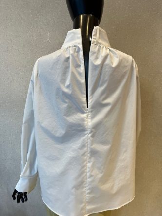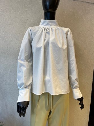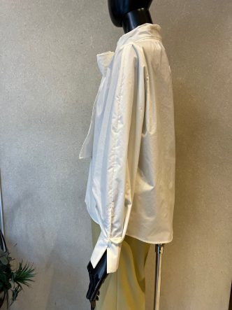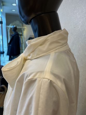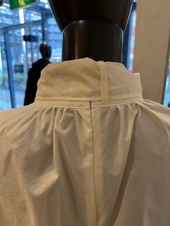 ノーカラーにお袖は少し肩が落ちたデザイン。