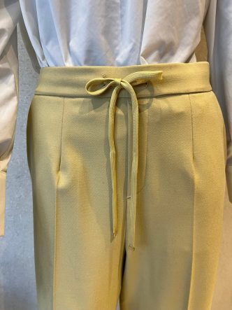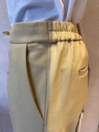 ウエストはファスナーも何もないデザインで、サイズ感を調整できるドロストコードが通っています。