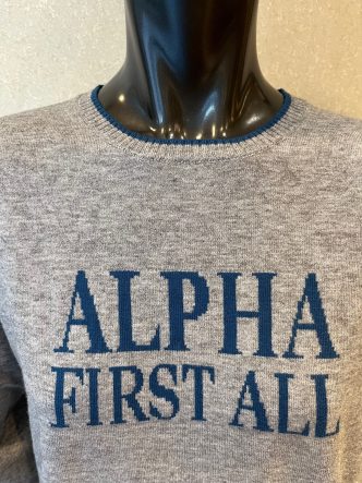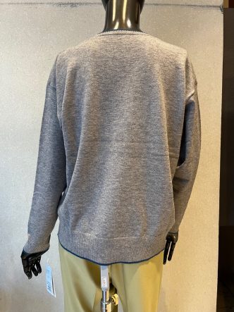 ネック回り、袖口、裾にもブルーが配色で入ってアクセントに♪