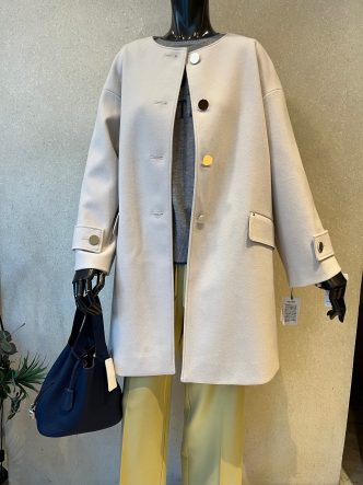 ウールは入っていませんが、ウール調のノーカラーコートです♡