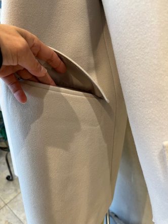 ラインは上品な、裾に向かって少しAラインに広がるシルエットになります。